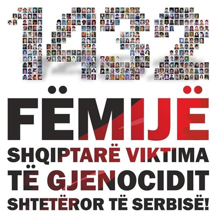 Me këtë rast, në shenjë respekti e dhimbjeje të pashuar, do ti kujtojmë e rikujtojmë 1432 Fëmijët tanë ‘engjëj’, viktima të gjenocidit shtetëror të Serbisë fashiste!