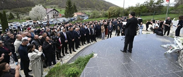 Andaj, sot jemi tubuar këtu të përkulemi para tyre, të betohemi para gjeneratave të reja dhe brezave që do të vijnë, se këto flijime me përmasë antologjike të djemëve dhe vajzave tona më të mira, të nënave dhe baballarëve tanë, nuk do t’i harrojmë kurrë, sepse gjaku i tyre është vet liria e Kosovës.
